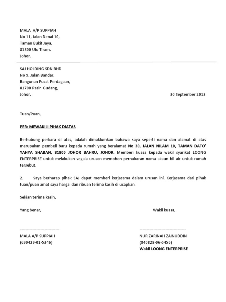 Contoh Surat Wakil Kuasa Tnb have a graphic from the otherContoh Surat Wakil Kuasa Tnb It also will include a picture of a kind that could be observed in the gallery of Contoh Surat Wakil Kuasa Tnb. Contoh surat wakil untuk ambik geran atau sebagainya. Surat kuasa adalah surat yang dibuat untuk memberikan wewenang kepada orang lain dari seseorang.